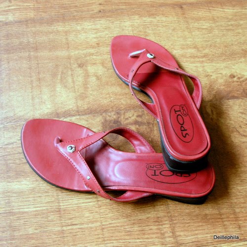 Czerwone, niewiele używane jednak w całkiem dobrym stanie. Miały kwiatek, który zniszczył się więc obcięłam go.
